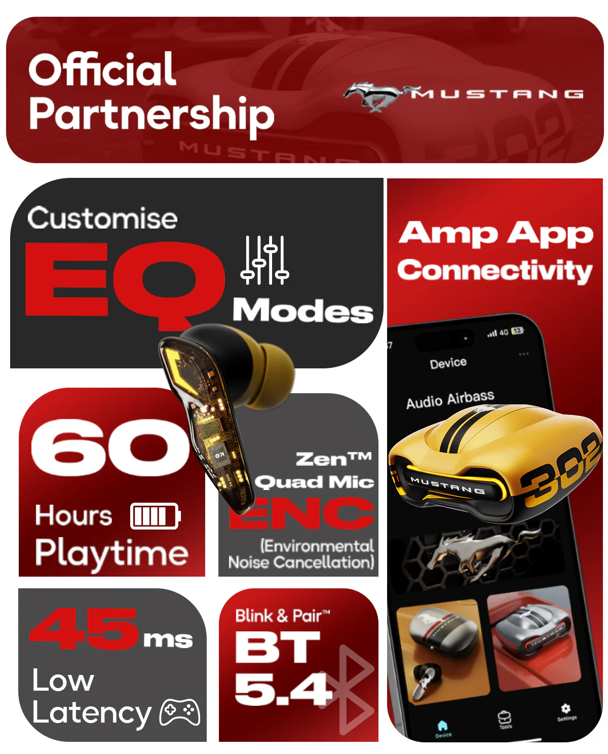Premium Wireless Earbuds with Mode Sync LEDs, 60 Hours Playtime with Lightning Fast Charging, ZENâ„¢ Quad Mic ENC, Blink & Pairâ„¢ Â BT 5.4 & 45ms Ultra-Low Latency Combatâ„¢ Gaming Mode